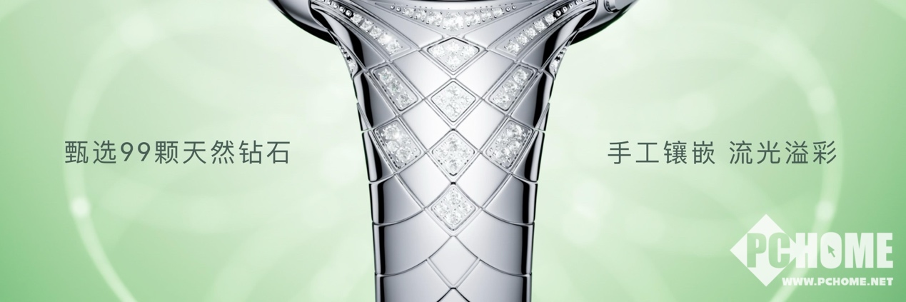 华为WATCH ULTIMATE DESIGN非凡大师星钻绽放手表以春天为设计灵感,撷春日韵律之美,以自然灵感勾勒非凡设计。表带以斐波那契黄金比例曲线为纹理,如具备生命力的藤蔓般延伸,并手工镶嵌98颗天然钻石,交相辉映,成就腕间艺术之作。表冠中央一颗天然钻石镶嵌其中,侧面精雕18个星钻切面,呈现玉兰花绽放的优雅姿态,每一次抬腕,皆是高端品味的无声表达。