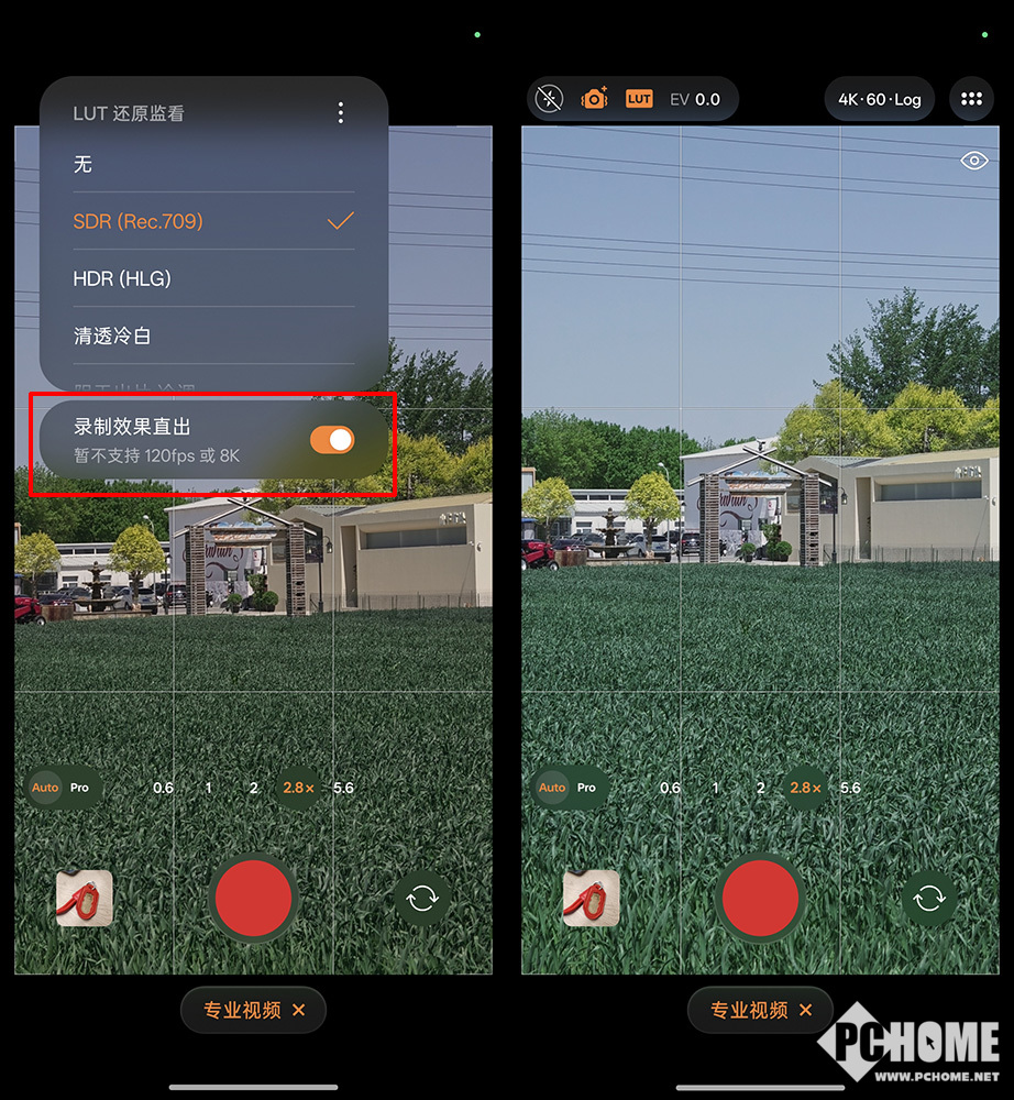 为了方便大众用户进行创作,OPPO Find X9s Pro提供了实时同步预览,可在取景框中直接查看灰片调色后的成片效果。OPPO方面甚至还提供了一键烧录功能,可以直接在拍摄时烧录3D LUT色彩效果直出成片,若未开启“录制效果直出”选项,最终保存的文件仍为原生Log灰片,也就是说,我们可以在预览色彩丰富的视频同时,保留更有后期空间的Log灰片。