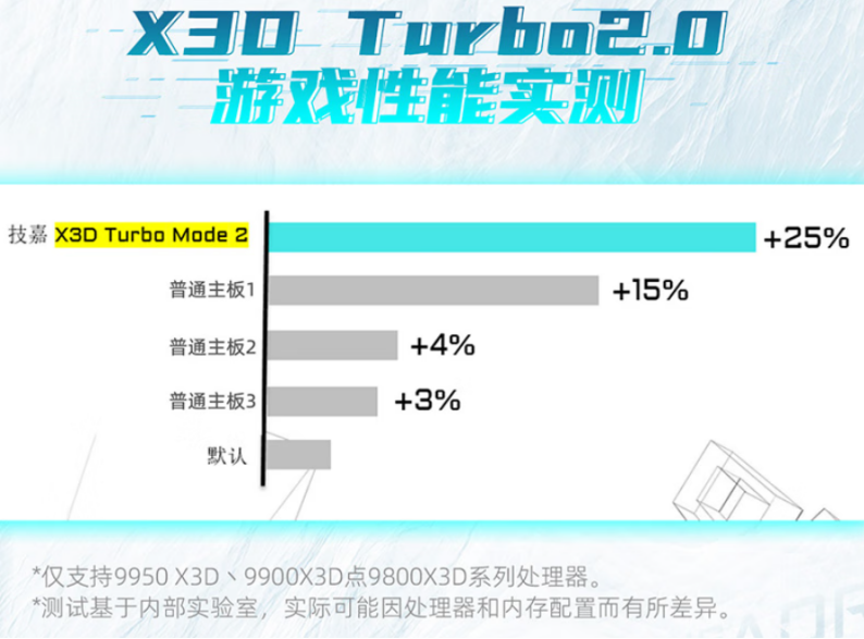重点是,主板预装专属BIOS,内置X3D Turbo(X3D鸡血模式2.0)技术,无需复杂调试,一键优化缓存调度逻辑,提升游戏帧率最高25%,大幅改善《CS2》《永劫无间》等竞技游戏的1% Low低帧表现,搭配AMD EXPO内存超频技术,进一步释放平台性能。