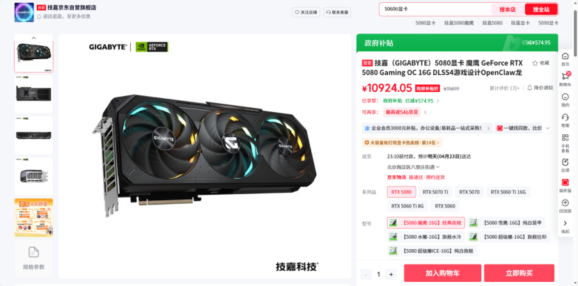 技嘉RTX 5080魔鹰:https://item.jd.com/100180790616.html