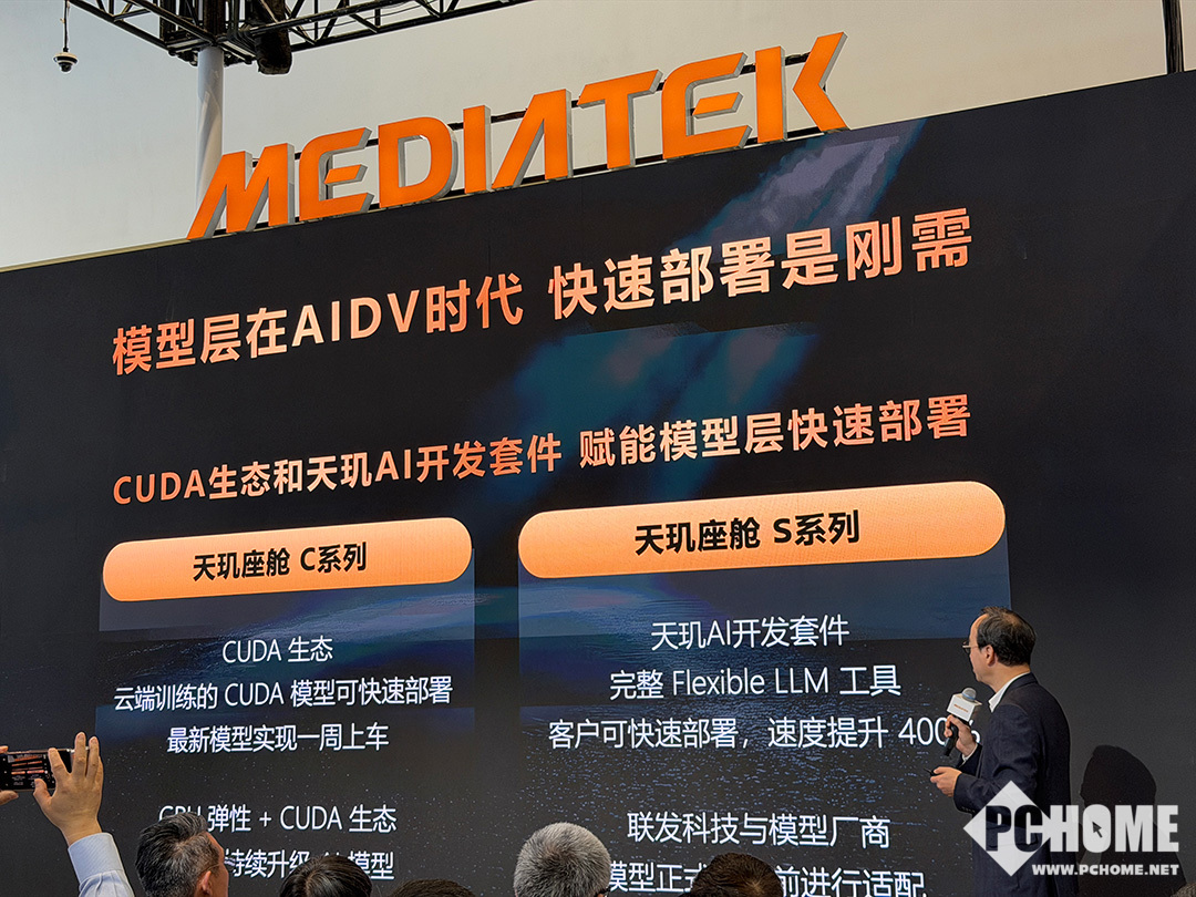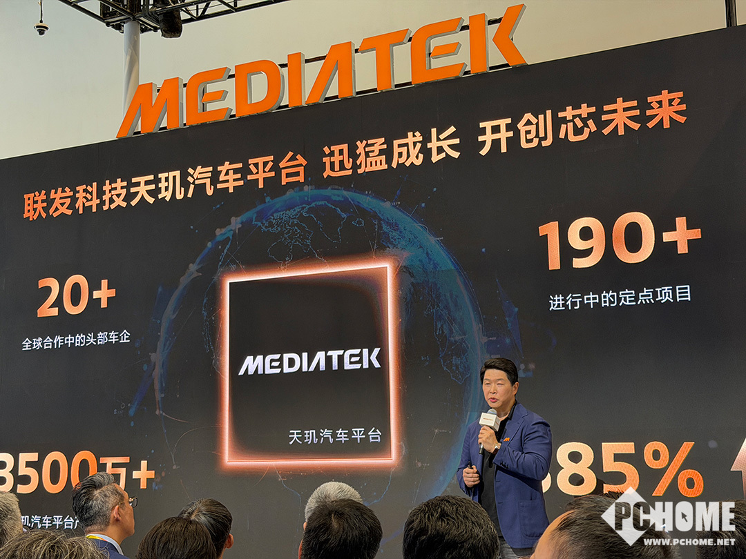 PChome北京车展报道,4月24日媒体日第一天,MediaTek在第十九届北京国际汽车展览会期间举办媒体沟通会,现场介绍了天玑汽车平台的最新业务进展,并发布了主动式智能体座舱解决方案,率先助推汽车行业迈入“AI定义汽车”(AIDV)新时代。会上,MediaTek携手生态伙伴,基于天玑汽车平台,集中展示了主动式智能体座舱、车载3A娱乐以及前沿车载联接等一系列解决方案,依托强大的AI算力、先进的AI加速技术、高效的图形渲染能力与领先的车载通信技术,加速推动智能出行体验的创新与升级。