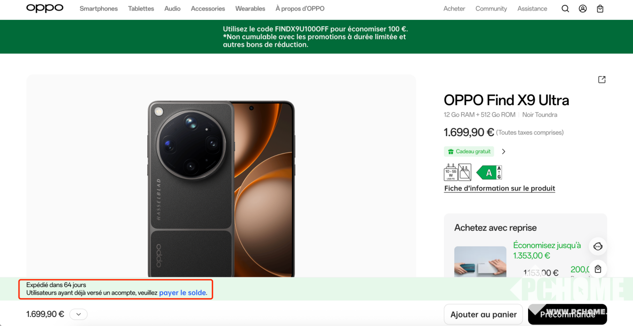在法国市场,OPPO官网数据显示,Find X9 Ultra 512GB版本目前已全面售罄,现在下单需等待64天方可发货,折合人民币约13600元的售价并未阻挡法国消费者的热情。