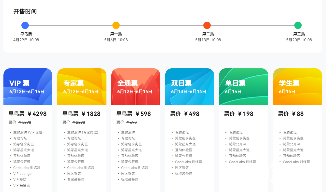 目前,大会门票已经开放购买,提供了VIP票、专家票、全通票、双日票、单日票、学生票,票价从88元至5298元不等,在主题演讲、专题论坛、休息室、餐饮、装备包等方面有不同的参会权益。