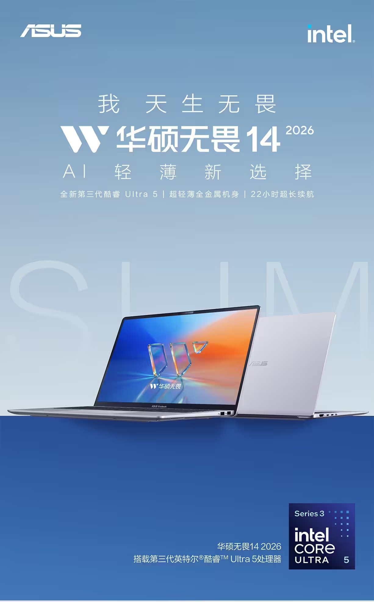 PChome4月29日消息,华硕无畏14酷睿版2026轻薄本正式在京东上架,主打轻办公与学生群体,两款配置定价清晰,性价比突出。其中16GB+1TB版本售价5999元,32GB+1TB版本售价6999元,可参与部分地区的国补活动。