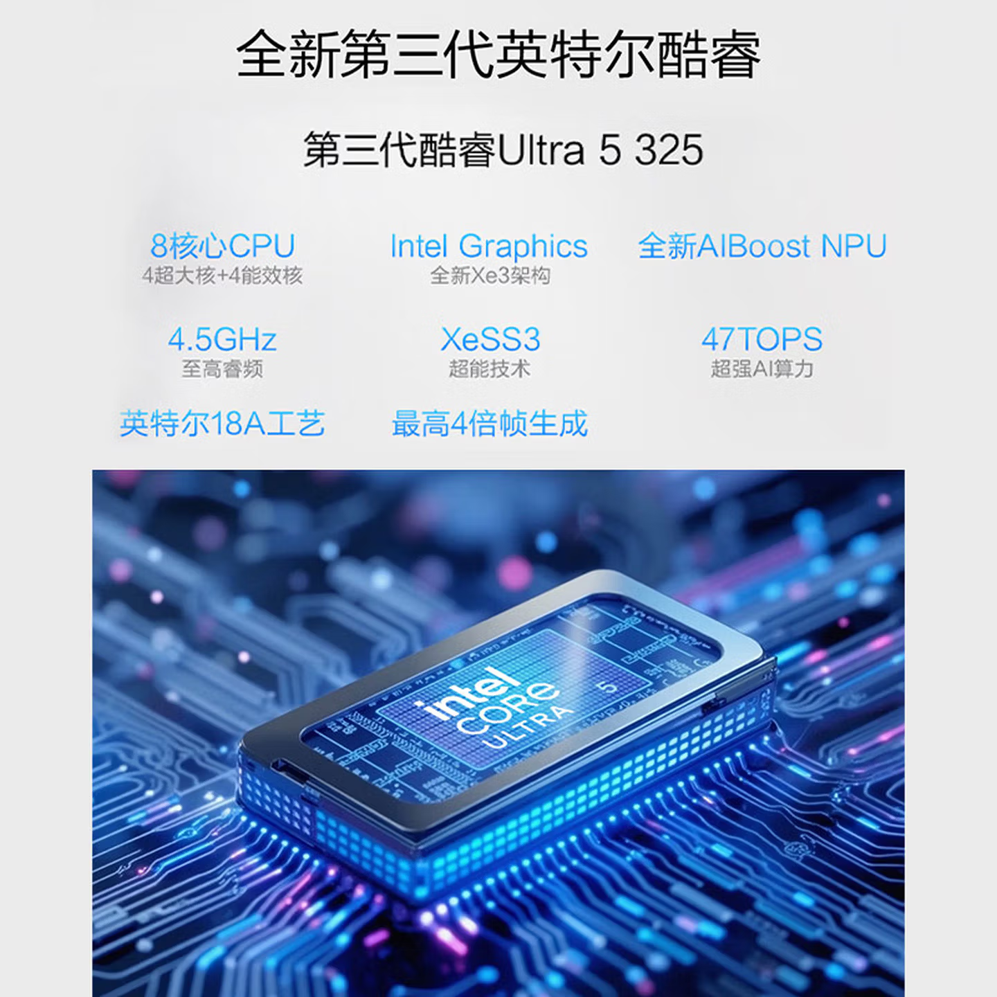 PChome总结,在核心配置方面,该机搭载英特尔第三代酷睿Ultra 5 325处理器(代号Panther Lake),基于Intel 18A制程,采用4性能核+8能效核+4低功耗核的异构架构,睿频至高4.5GHz,NPU算力达47 TOPS,支持XeSS 3技术,整机40W稳定性能释放,可轻松应对办公与轻度创作。