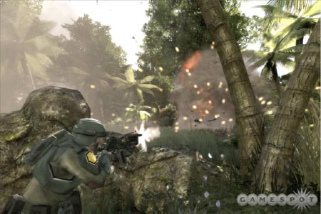 《Haze》从画面上来看有点像《孤岛惊魂》,有着茂密葱翠的丛林场景。虽然目前还处于初期开发阶段,从DEMO来看本作的画面还是十分出色的丛林中的光影效果令人印象深刻,人物动作流畅,画面帧数充足。游戏中玩家是操纵小队进行作战的,团队命令包括有掩护、跟随、攻击等基本指令,通过方向键下达命令。《Haze》是曾经开发了《时空分裂者》的Free Radical制作室9年经验的结晶,将会带给玩家精彩的FPS体验。