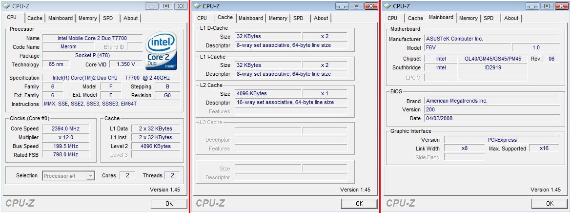 Intel Core 2 Duo T7700处理器信息,点击可看大图