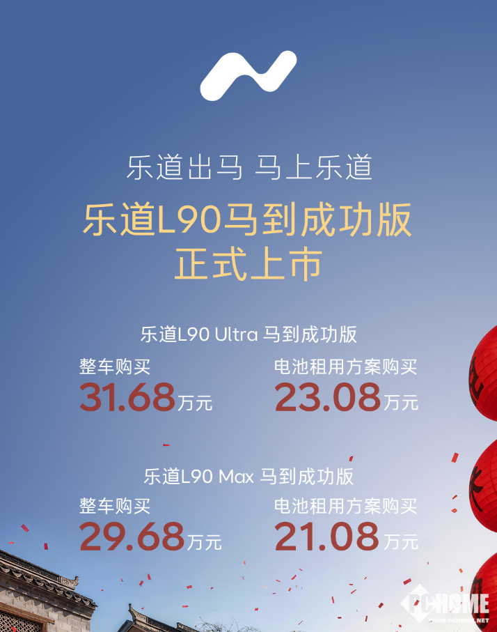 2026年1月23日,乐道L90新推出的“马到成功版”今日上市,29.68万元整车起售,21.08万元租电起售。