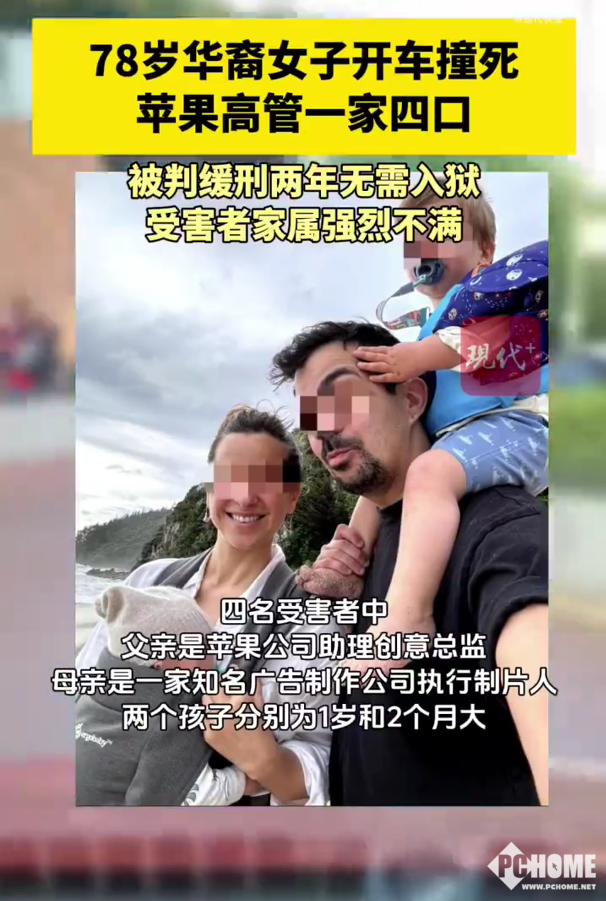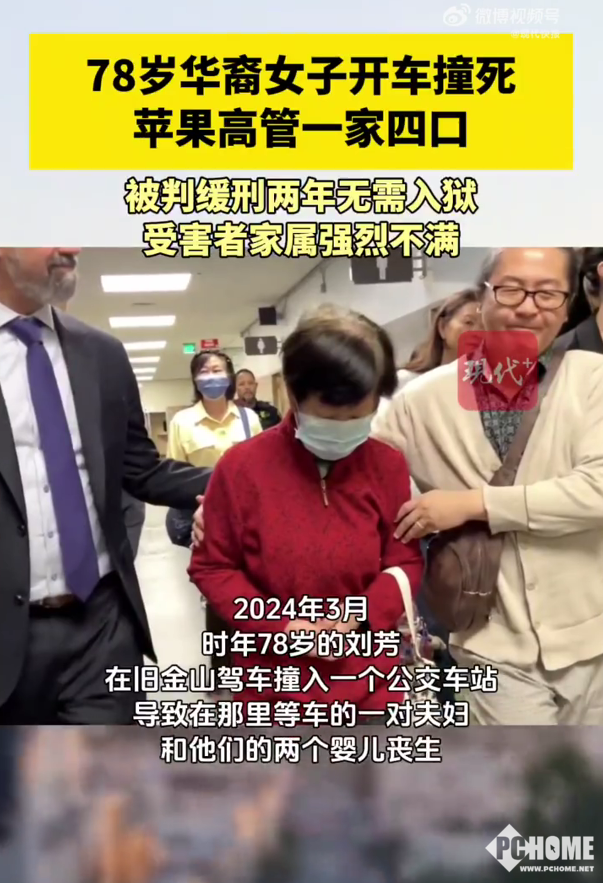 PChome 3月23日消息,据现代快报报道,美国旧金山一名78岁华裔女子因超速驾驶撞死苹果公司高管一家四口,最终仅被判缓刑两年且免于入狱,引发全球对司法公正与高龄驾驶安全的激烈争议。
