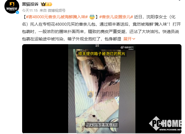 2025年11月4日消息,据黑猫投诉报道,一位沈阳网友称,自己托人在专柜购买的“香奈儿包”,通过顺丰快递邮寄,在运输途中快递物品遭到污染,竟然被海鲜“腌入味”。顺丰快递表示,仅能按保价金额赔付1000元。