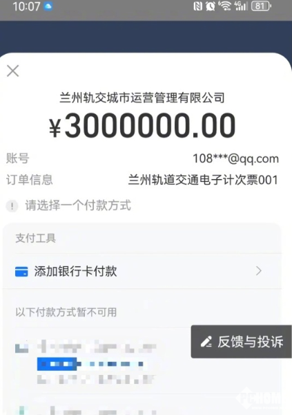 2025年12月19日,据新浪财经报道,昨日,兰州多名网友发文表示原本单张售价300元、不限里程可乘坐100次的地铁电子计次票买完却是3万。