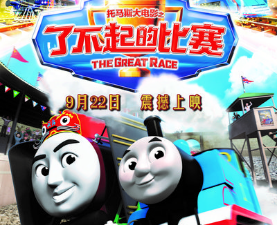 美泰公司(Mattel, Inc.)宣布旗下托马斯&朋友™最新家庭CGI电影 -- 《托马斯大电影之了不起的比赛》于9月22日起登陆中国全国院线,覆盖23个省份和超过4000家影院