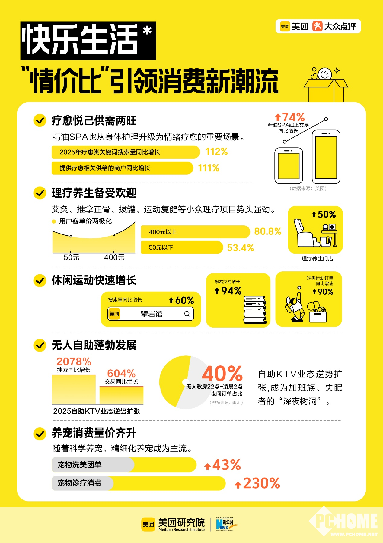 同时,2025年“平替”相关搜索量同比增长26.4%,含“平替”关键词的到店消费商品供给同比增长97.8%,首次上新的智能按摩空间品牌“乐摩吧”,上线单日便突破17万单。