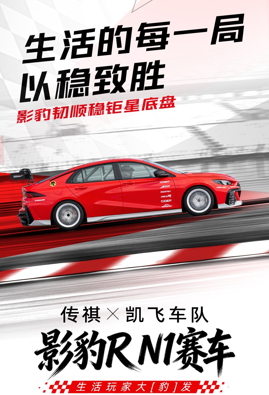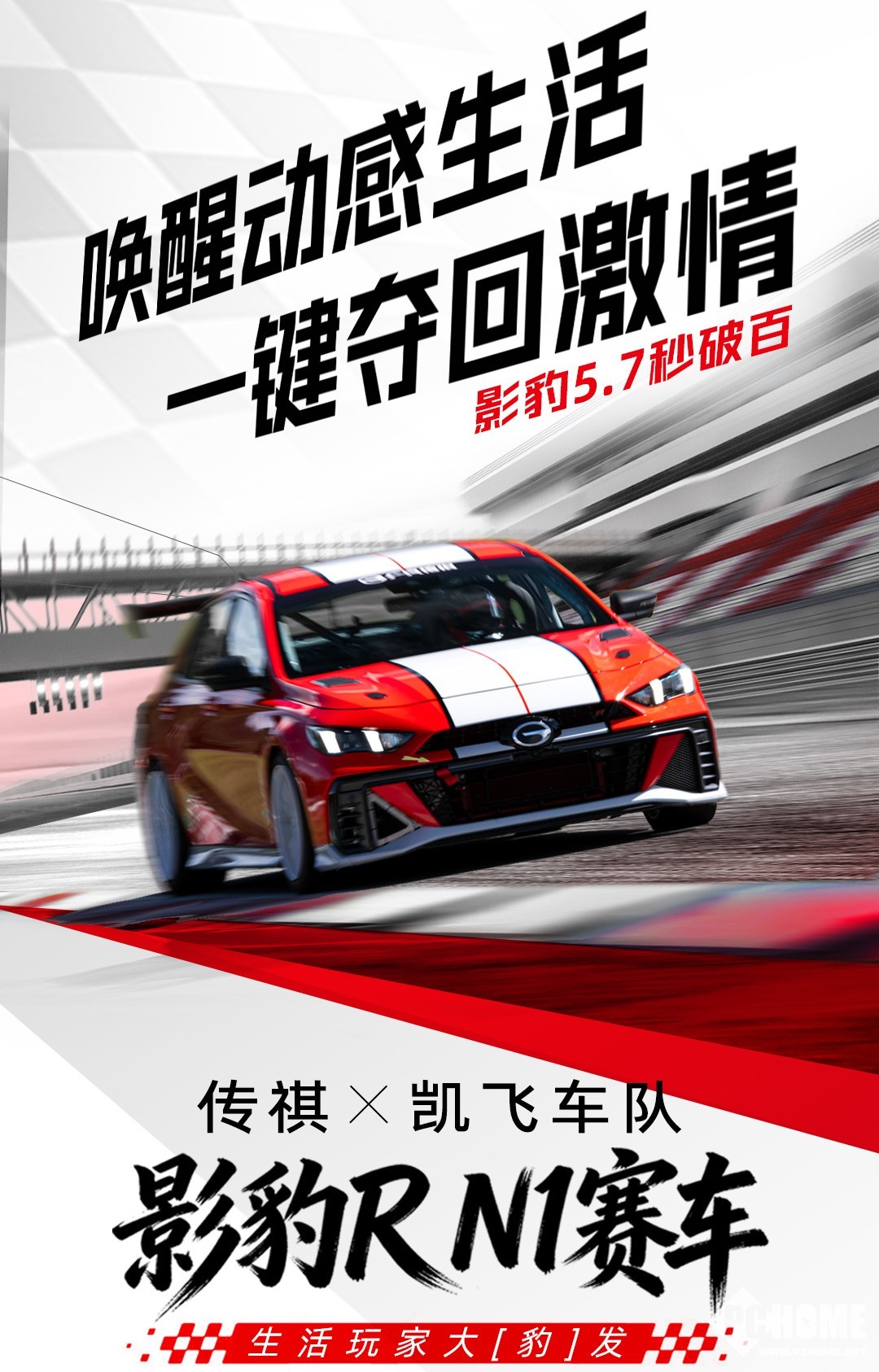 广汽传祺官方今日宣布,由凯飞车队和广汽传祺联合打造的影豹R N1赛车官宣上市,该车基于影豹R平台,5.7秒即可破百,动感价9.8万元起。