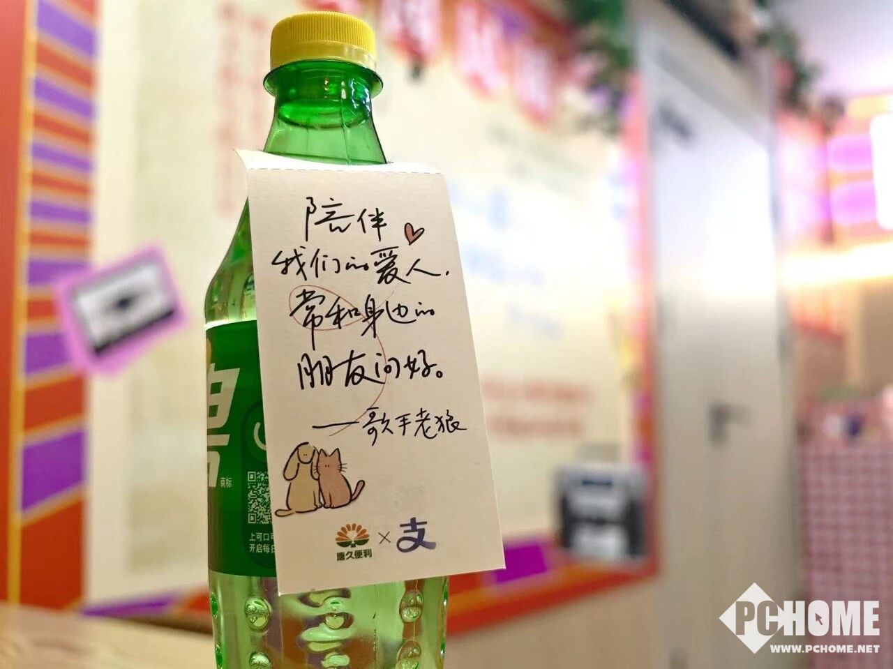 2026年1月22日,支付宝官方账号发布消息,本周开始每周五,在唐久便利店用“支付宝碰一下”购买任意酒品,赠送雪碧与老狼手写金句,“酒搭子”饮料共100万份,送完为止。