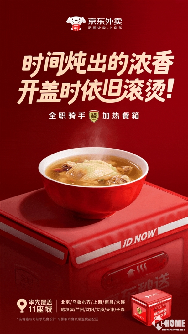 2026年1月22日消息,近日,京东外卖宣布加热餐箱服务将于近期扩大覆盖至11座城市,并为全职骑手免费配置。目前,北京、上海、乌鲁木齐、南昌已率先上线,哈尔滨、长春、沈阳等7个寒冷城市也将于1月底前完成覆盖。