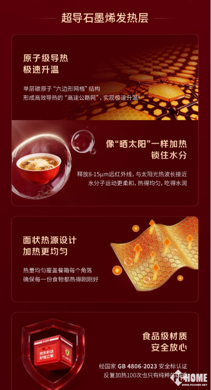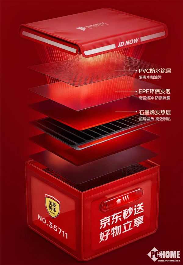 此次上线的加热餐箱依托超导石墨烯发热层,采用面状热源设计实现极速升温且热量均匀覆盖餐箱各个角落,避免餐品出现“外热内凉”的情况。箱体全部采用符合国标的食品级材质,反复加热无异味残留,最大程度保留餐品的原汁原味。京东外卖实测数据显示,将初始温度70℃的餐品放入加热餐箱,20分钟配送后温度仍稳定在70℃,相较普通餐箱温度高出20℃;即便是60分钟以上的超远距离配送,餐箱内温度也能持续保持在55℃以上,彻底解决冬季外卖降温难题。