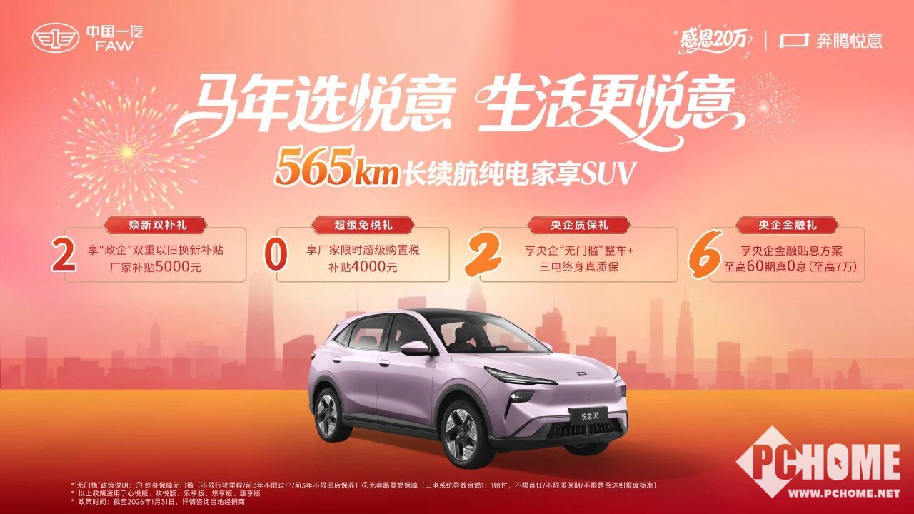 值得注意的是,产品力升级之外,近期一汽奔腾还暖心推出“奔腾悦意新年欢乐购”,1月31日前购买奔腾悦意03主要款型,就可享受央企四重“真”保障。