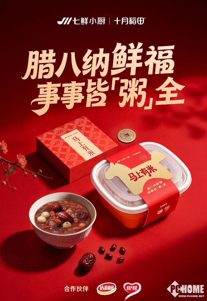 2026年1月26日消息,京东黑板报官方账号发布消息,今天起至1月27日,每天10点、12点、17点下单七鲜小厨免费送福粥福米,十月稻田福米、达利园/银鹭八宝粥各1份,3天连送60000份。