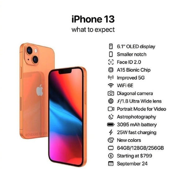 距离传闻中的苹果秋季新品发布会越来越近了,而且该系列的配置信息也已经基本明朗。近日,苹果iPhone 13的详细配置和售价信息被曝光。在外观上,iPhone 13依然采用和iPhone 12一样的直角边框的设计,且按键和摄像头等布局也基本一致。