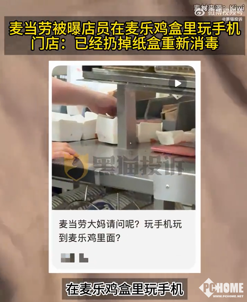 从网友发布的视频中可以看到,涉事店员未按规范佩戴一次性手套,在工作区域内直接将手机放置在麦乐鸡专用包装盒中,操作手机期间手部多次直接接触盒体内部,操作完毕后,店员未对包装盒做任何处理,直接将手机继续留在盒内。视频一经发布引发网友对门店食品安全管理的广泛质疑,认为该行为是否反映出门店日常管理存在明显漏洞。