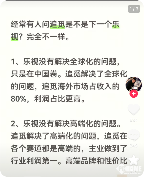对此,俞浩在回应中指出,追觅与乐视存在三大本质区别。第一,乐视当年主要局限于中国市场的竞争,而追觅已构建起稳固的全球市场体系,目前海外市场收入占比高达80%,利润占比更是超过营收占比。第二,乐视始终未能突破高端化瓶颈,而追觅从成立之初便锚定高端市场,主营业务利润率稳居行业第一。第三,乐视在研发创新方面存在不足,而追觅始终以技术创新为根基,目前已组建上万名研发工程师团队。
