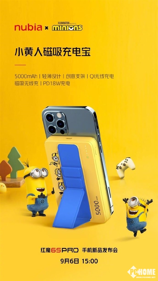 今日下午三点,努比亚将举办新品发布会,不仅会推出红魔游戏手机6S Pro,还将带来一款小黄人磁吸充电宝,非常小巧,外观也非常的可爱,经典小黄人元素,还有贴心的电量指示灯,支持QI无线充电+磁吸无线充,甚至还能当支架。