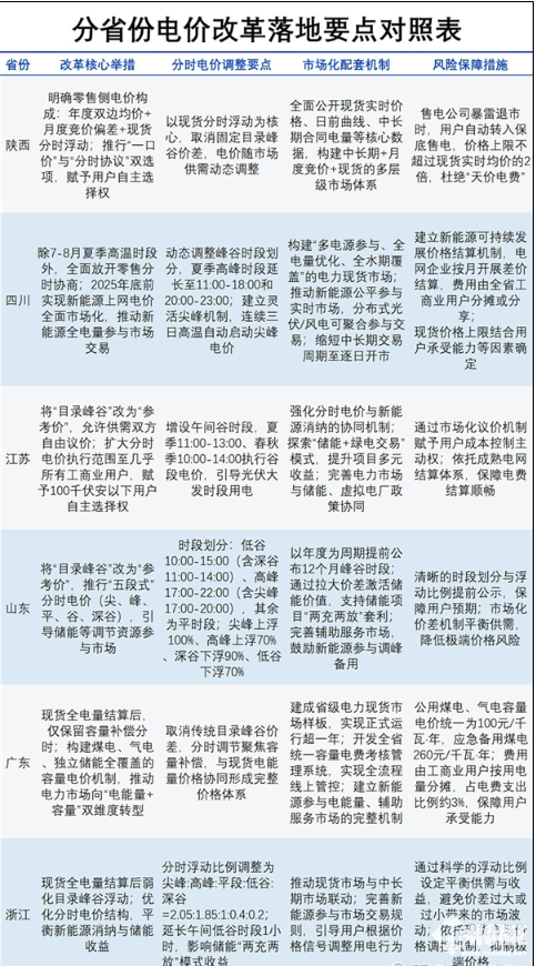 媒体进一步指出,上述9个已明确取消固定分时电价政策的省市分别是贵州、河北(主要是河北南网)、湖北、陕西、吉林、云南、重庆、辽宁、河南,江苏、山西两省的调整方案仍处于征求意见阶段。