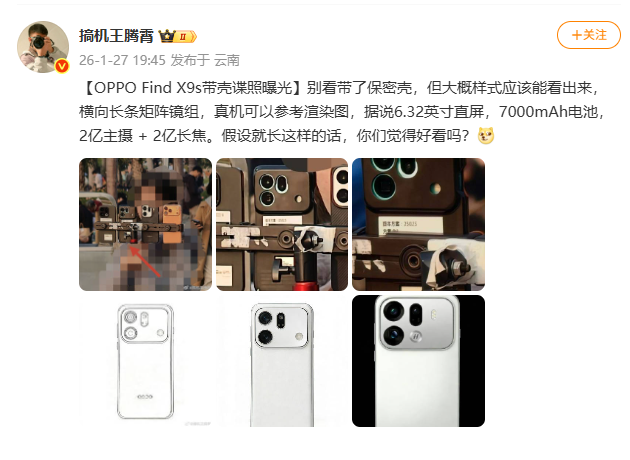 2026年1月28日消息,博主“搞机王腾霄”于昨日发布了一组OPPO Find X9s测试机在户外测试时的抓拍图,机身细节与核心配置同步曝光。