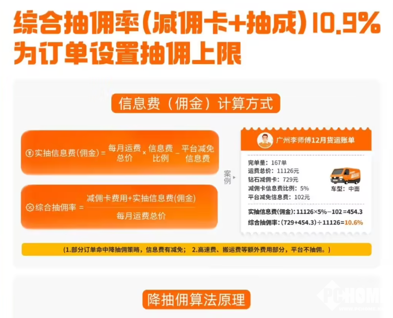 在降抽佣方面,平台针对用户出价单、顺路单、拼车单等特定订单类型以及100公里以上订单实行降抽,还会针对部分时间段或区域订单进行调整。每笔订单设有抽佣上限,未使用减佣卡的司机,抽佣上限为100元/单;使用减佣卡的司机,抽佣上限则降至50元/单。官方数据显示,2025年货拉拉在降抽佣上累计让利2.6亿元,减佣卡与抽成综合抽佣率降至10.9%。