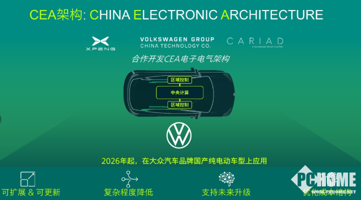 据贝瑞德此前发文介绍,自2026年起,国产大众汽车品牌的纯电动车型(包括基于CMP和MEB平台开发的车型)将搭载全新的CEA电子电气架构——China Electronic Architecture。该架构由大众汽车(中国)科技有限公司(VCTC)、CARIAD中国和战略合作伙伴小鹏汽车三方共同打造,将推动大众汽车向智能网联汽车时代转型,核心功能包括以下两个方面:1、单车内控制单元数量将大幅减少30%,降低操作系统的复杂程度;2、加速在华车型阵容数字化,高级自动驾驶辅助(ADAS)等复杂功能可以更迅速、便捷地集成到架构当中。此外,CARIAD中国也将转型进行本土智能网联汽车技术研发与创新业务,并为CEA开发集成前沿的高级自动驾驶辅助系统(ADAS)及智能座舱功能。