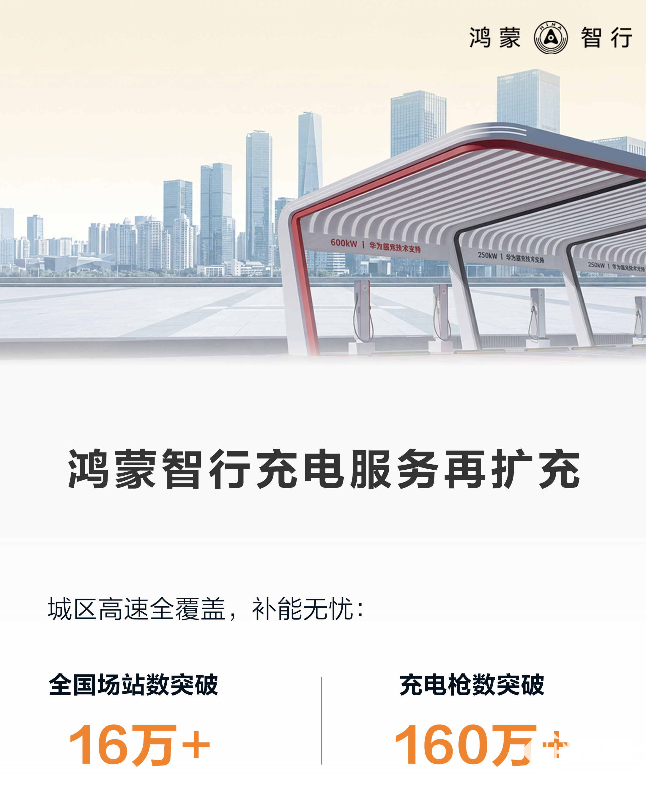 鸿蒙智行全国充电场站数突破16万座,其中快充站超12万座,超充站超7000座,充电枪数量超160万把。鸿蒙智行充电站目前已覆盖全国350多座城市、2700多个县市。