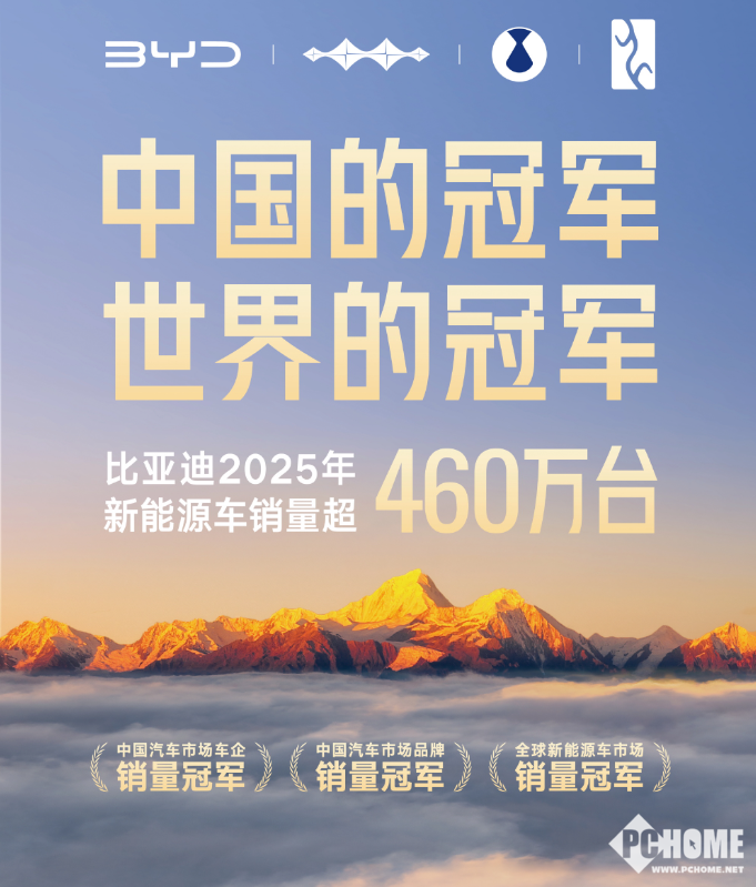 2月3日消息,比亚迪集团品牌及公关处总经理李云飞今日在微博发文宣布,2025年比亚迪新能源车销量超460万台。比亚迪已连续四年蝉联全球新能源车市场销量冠军,并包揽了2025年中国市场车企销量冠军与中国市场品牌销量冠军。