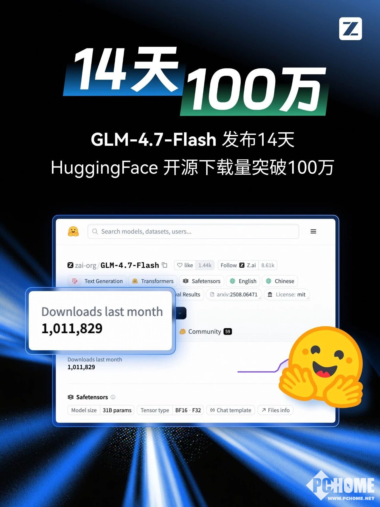 2026年2月4日消息,智谱官方账号宣布,GLM-4.7-Flash开源14天突破百万下载。