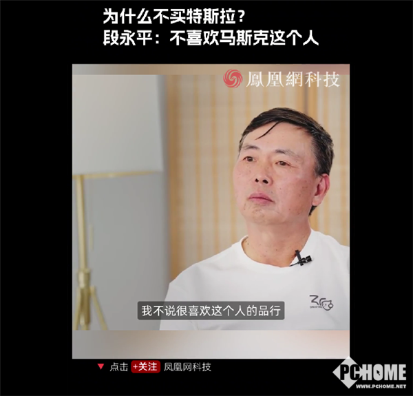 去年11月份的访谈中,段永平被问及特斯拉股票投资时,他坦言不是很喜欢马斯克的品行,投资实际上在跟公司经营者做朋友,“马斯克这个人是厉害,他有很多想法,也确实是很先进的,但是投资我觉得我比较难,我不想跟他做朋友,哪怕给我钱我也不干。”