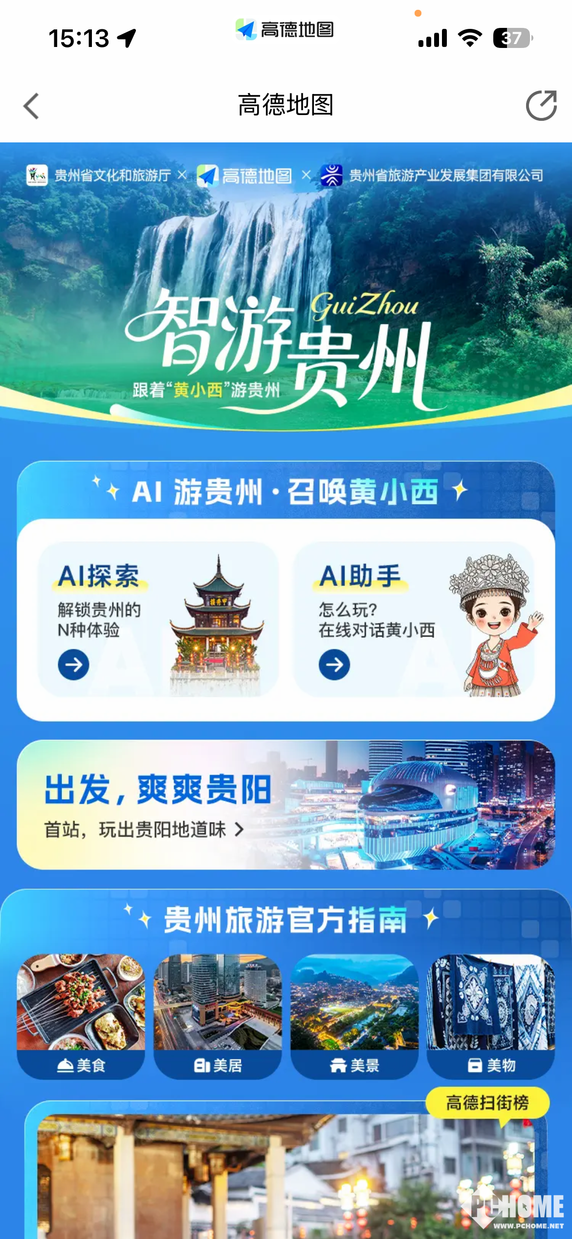 据了解,目前,合作首批成果已在高德地图APP正式落地,用户在高德地图搜索“贵州”“贵阳”“贵州旅游”,即可进入“黄小西带你游贵州”服务板块,一站式获取行程规划、景区导览、本地推荐等一体化文旅服务,同时,黄小西专属开屏登陆高德全平台,提升触达与体验便捷度。高德表示,本次合作是高德“出行+文旅”场景融合的重要实践,将持续完善“数据整合—服务输出—体验优化”的智慧文旅服务链路,与黄小西的本地文旅洞察相结合,优化个性化行程、拥堵提示、特色点位推荐等体验。