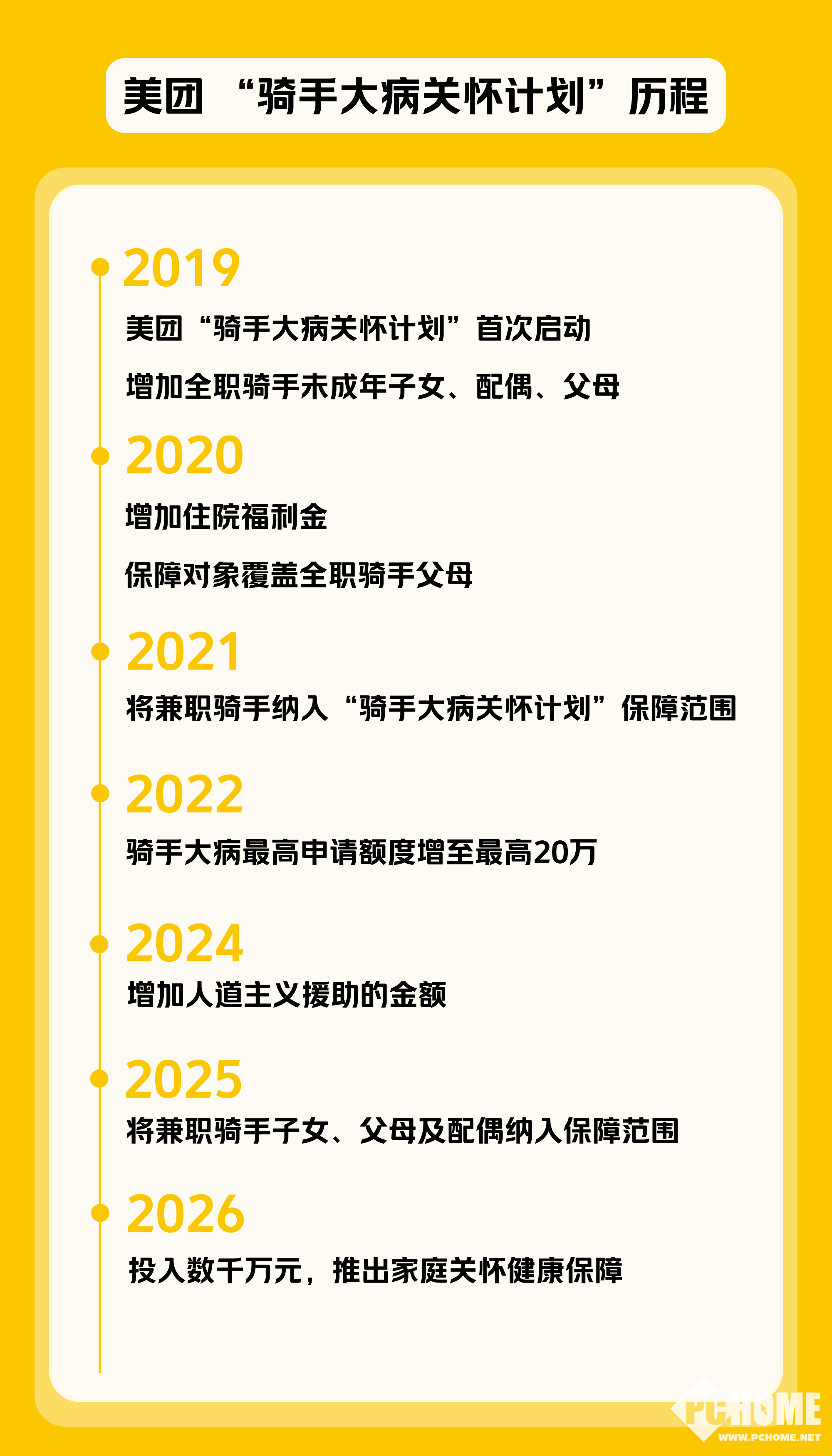 2026年2月7日消息,2月10日起,美团“骑手大病关怀计划”将继续升级,2026年,美团将免费为稳定跑单骑手及其家庭成员新增住院诊疗补充医疗保障。