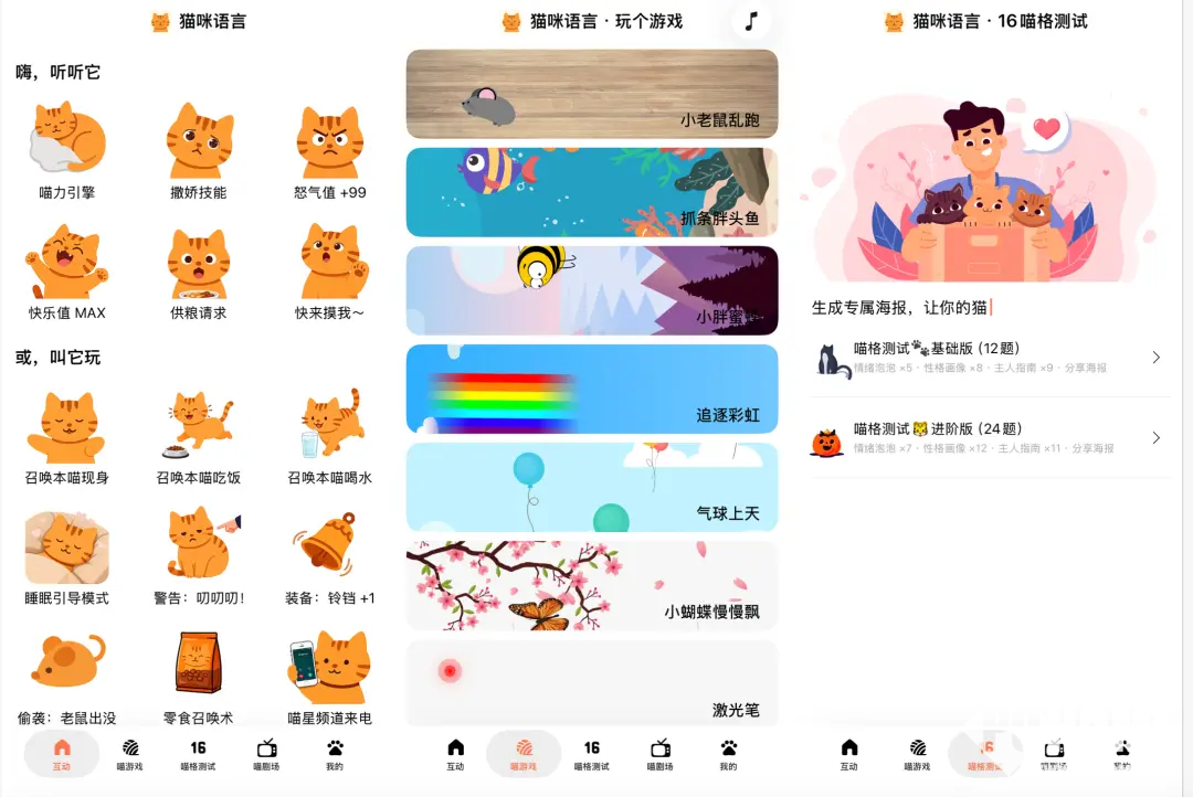 该应用主打简单与轻量化互动,通过声音、动画、游戏等形式模拟与真实猫咪的交流场景。据开发者何先生介绍,音频部分素材源自自家猫咪录制,以贴合真实猫咪习性。开发全程主要利用周末业余时间推进,团队仅两人,整体成本约1000元,历时约两个月完成。目前该应用已成功回本,并持续产生稳定收益。