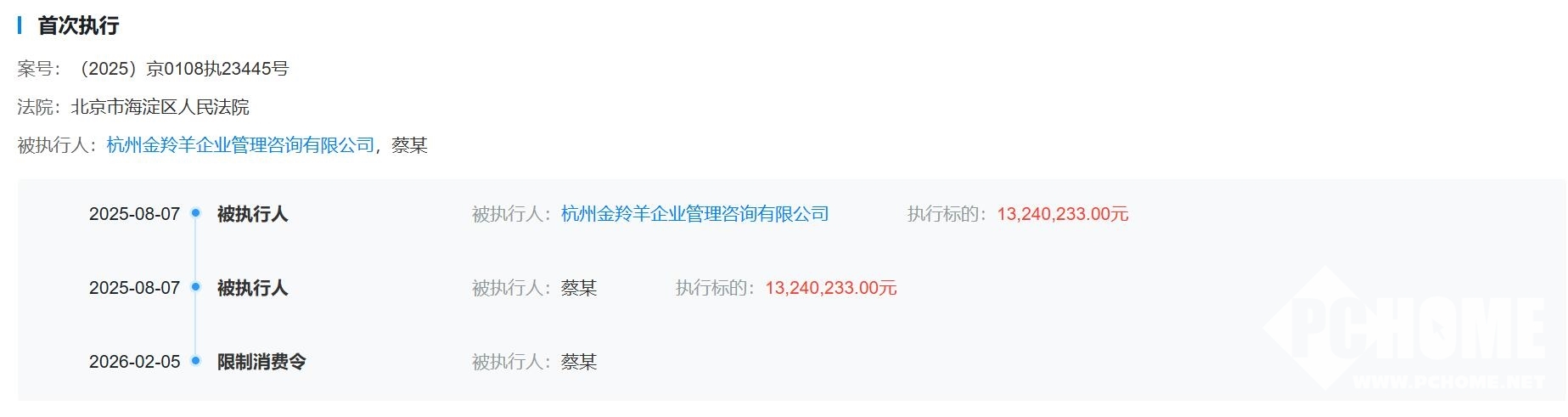公开信息显示,杭州金羚羊已有多条被执行人信息,被执行总金额超1.4亿元;2024年因拖欠分众传媒1125万元广告费被强制执行,公司及法定代表人蔡红亮被列入限制消费名单。