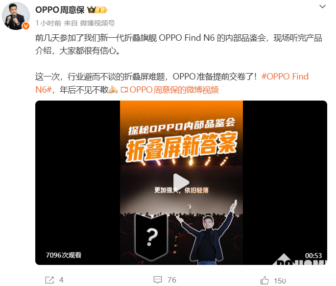 2026年2月9日,OPPO Find系列产品负责人周意保发文宣布,“行业避而不谈的折叠屏难题,OPPO准备提前交卷”,并官宣OPPO Find N6定档春节后上市。