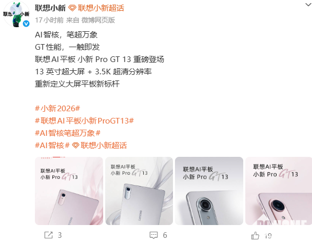 2026年2月12日消息,联想小新于昨日晚正式官宣AI平板小新Pro GT 13,以13英寸超大尺寸与3.5K超清分辨率,打造小新平板史上最强屏幕。