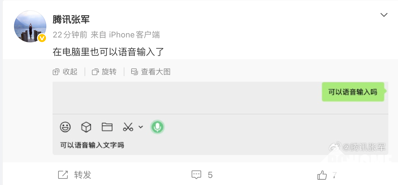 2026年2月13日,腾讯公司公关总监张军在社交媒体平台官宣,微信电脑版上线语音输入功能。