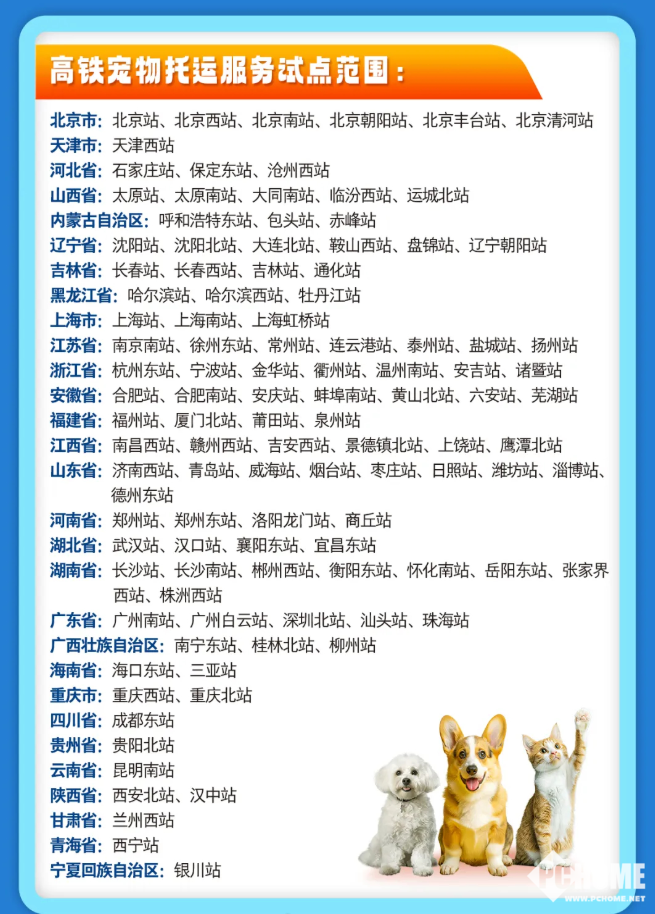 2026年2月13日消息,高铁宠物托运服务已全面升级,自2026年1月28日起,试点范围第四次扩容,新增哈尔滨、沈阳、太原、郑州、上海、赣州西、珠海、桂林北、银川、西宁等67个车站。