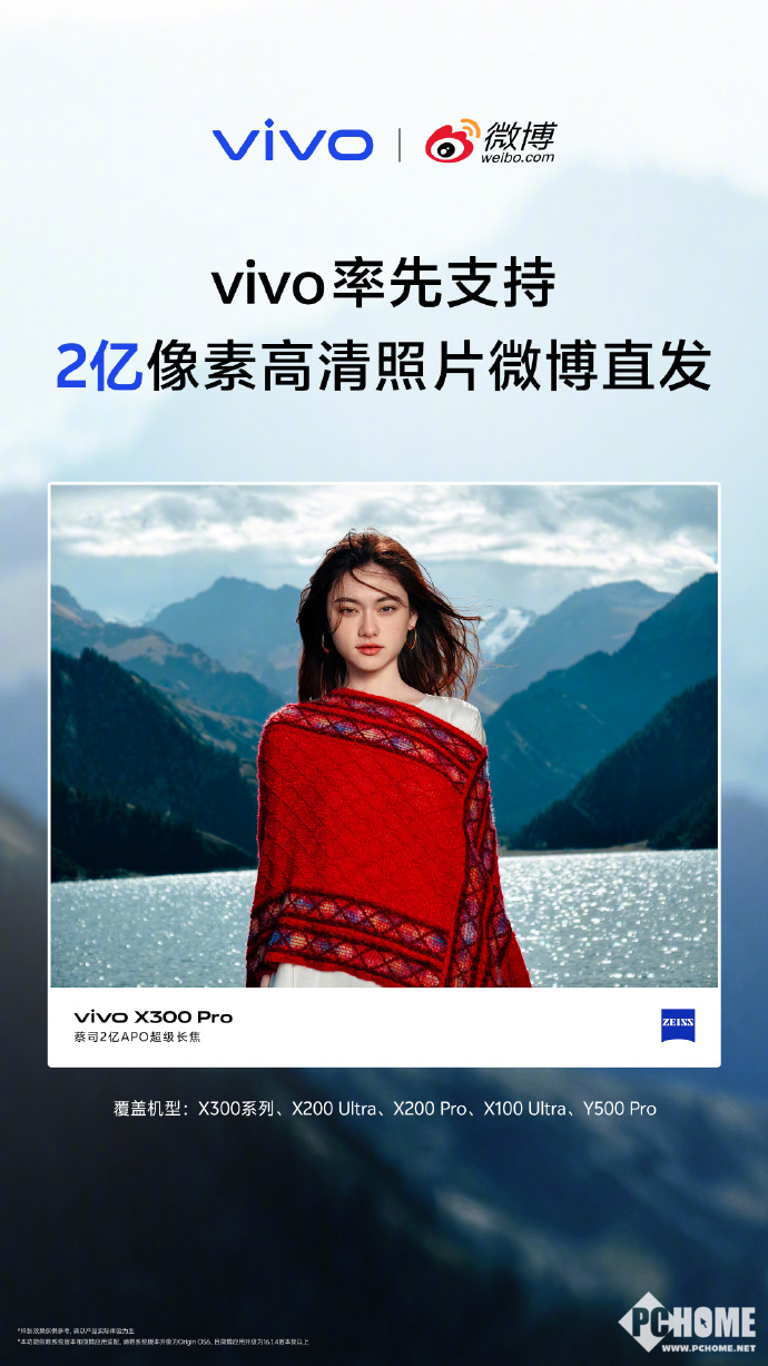 2026年2月13日,vivo官方宣布,率先支持2亿像素高清照片微博直发功能,成为行业首家实现高像素影像在社交平台原生直出的手机品牌,覆盖vivo X300系列、X200 Ultra、X200 Pro、X100 Ultra、Y500 Pro机型。