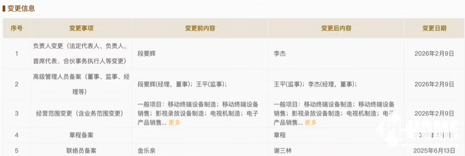 2026年2月13日消息,据国家企业信用信息公示系统显示,OPPO广东移动通信有限公司发生工商变更,李杰接替段要辉成为法定代表人,并同时担任经理及董事职务。