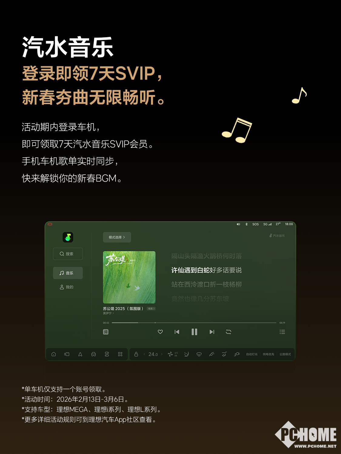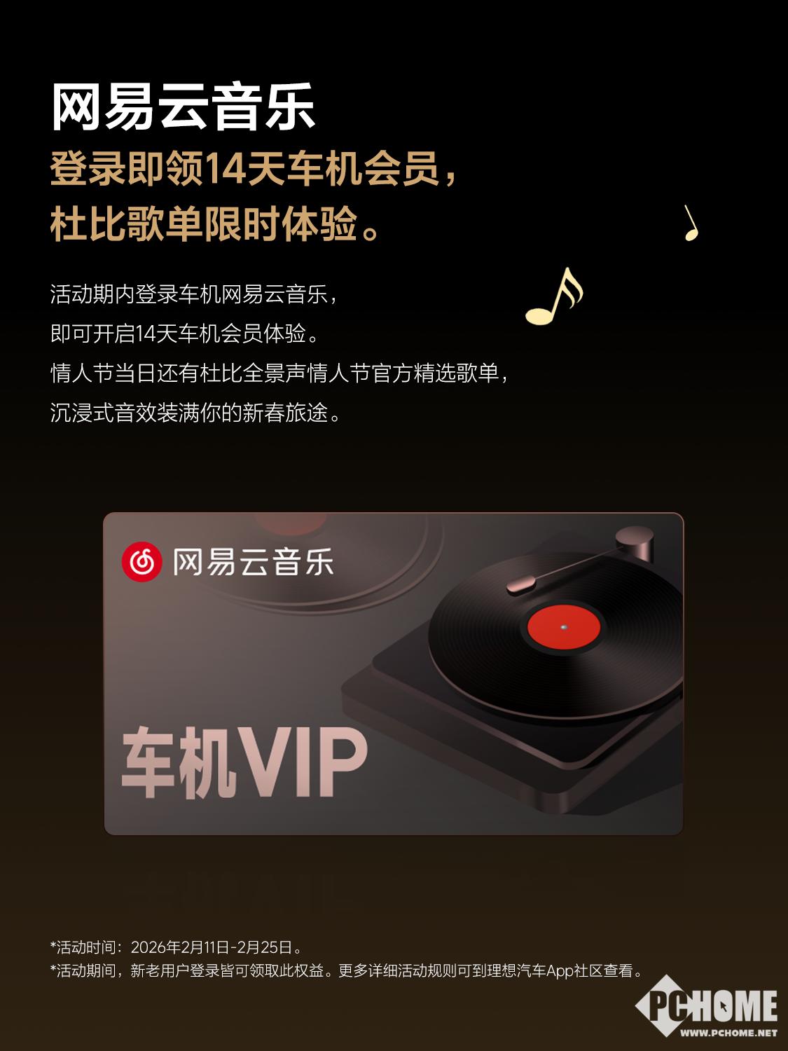 本次合作中,网易云音乐率先提供14天车机会员权益,活动期间(2月11日-2月25日)登录车机应用即可领取,同时在情人节当天上线杜比全景声官方精选歌单,为新春旅途增添沉浸式听觉享受。