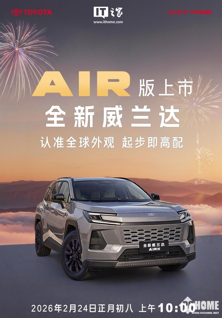2026年2月23日消息,广汽丰田全新威兰达AIR版将于明日上午10点正式上市,定位为威兰达车系新增版本。