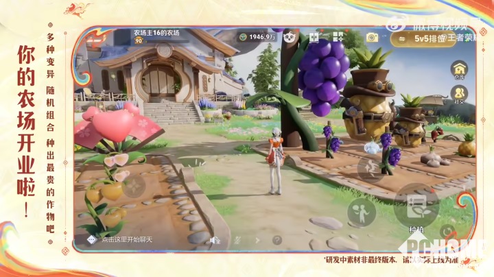 据介绍,该玩法首期将上线60余种蔬菜水果作物,支持自由视角转换、田地升级与自定义布局。最大的亮点为作物变异机制,作物生长过程中会随机触发特殊变异,可种出带有英雄特征的趣味果实,例如酷似马可波罗的“马可菠萝”、小乔的扇子等,收获后可兑换农场币、装饰道具与游戏内福利。