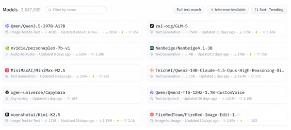 2月24日,全球最大AI开源社区Hugging Face公布新一期开源大模型榜单,阿里最新开源的原生多模态模型千问3.5斩获榜首,成为全球最受开发者关注的开源大模型。值得关注的是,榜单前十名中中国团队研发的模型占据八席,彰显我国在开源大模型领域的核心竞争力。