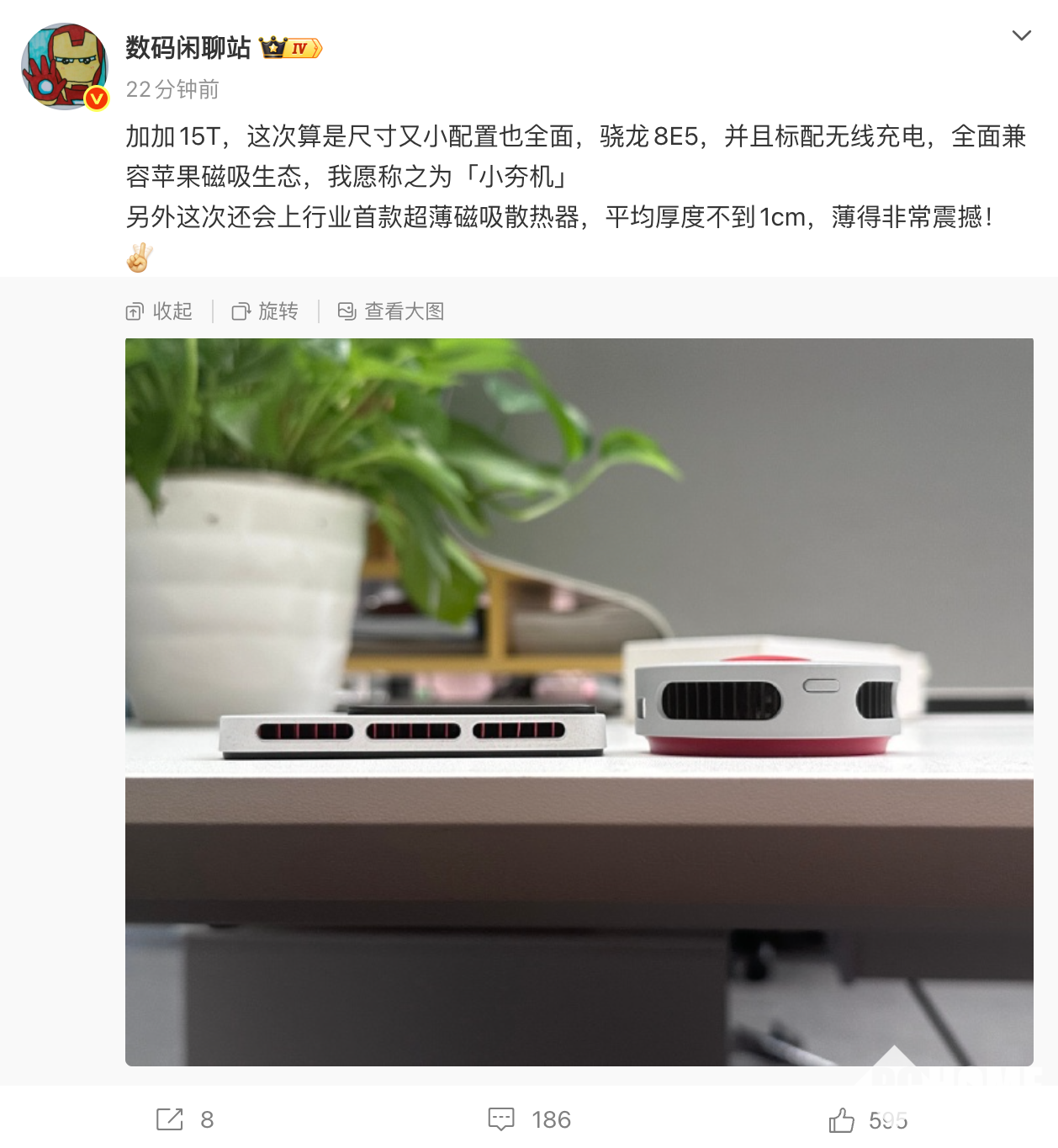 值得注意的是,数码闲聊站还曝光了一加15T的配件新品——行业首款超薄磁吸散热器,平均厚度不到1cm,薄得“非常震撼”。